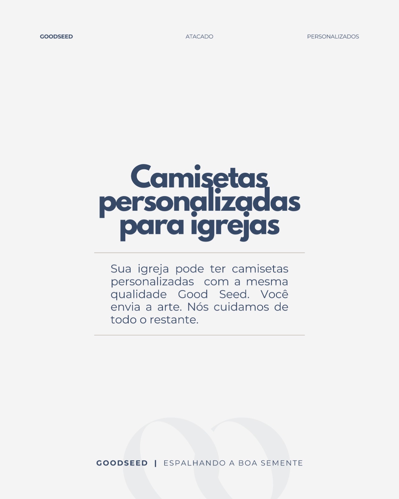 Você já imaginou sua igreja toda uniformizada com camisetas estilosas que espalham a palavra de Deus? Pois é, a Good Seed chegou para facilitar essa missão e ainda deixar seu grupo com aquela carinha moderna e cheia de propósito!